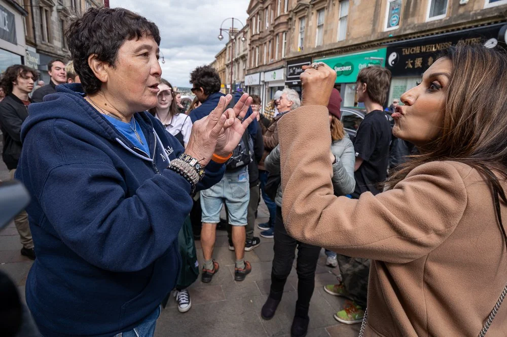 The exhibition launch took place on the evening of Friday 12th May and was sold out. After refreshments in the outside courtyard the audience made their way into the exhibition space at The Deep End Gallery, Govanhill, for a short introduction from each of us, after which they were free to wander, view the selection of prints and also watch some video footage depicting scenes and stories from the previous year’s industrial action strikes and rallies in Glasgow. My own images were largely taken from the project that has already been featured in the Progressive Street Demonstrations Around The World blog and Issue 38 of the ProgressivE-zine.
