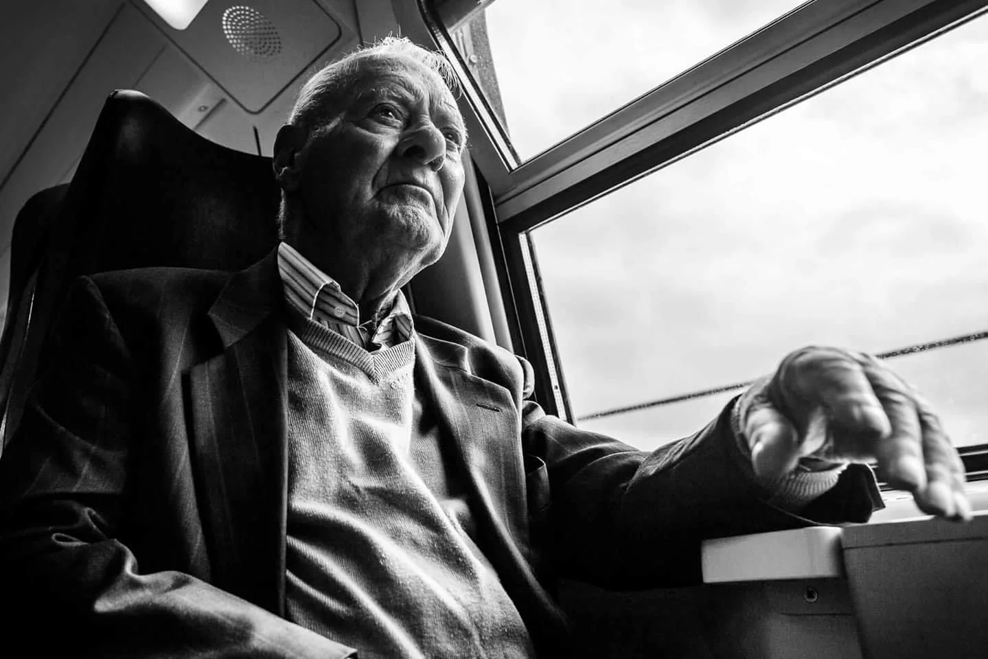 The image has impact! You are drawn into the blast of wind by the glare of the passing train centrally between the backs. The blur of the train and blowing hair adds movement and dynamics. Terrific mono, mood, and story! Robert Bannister