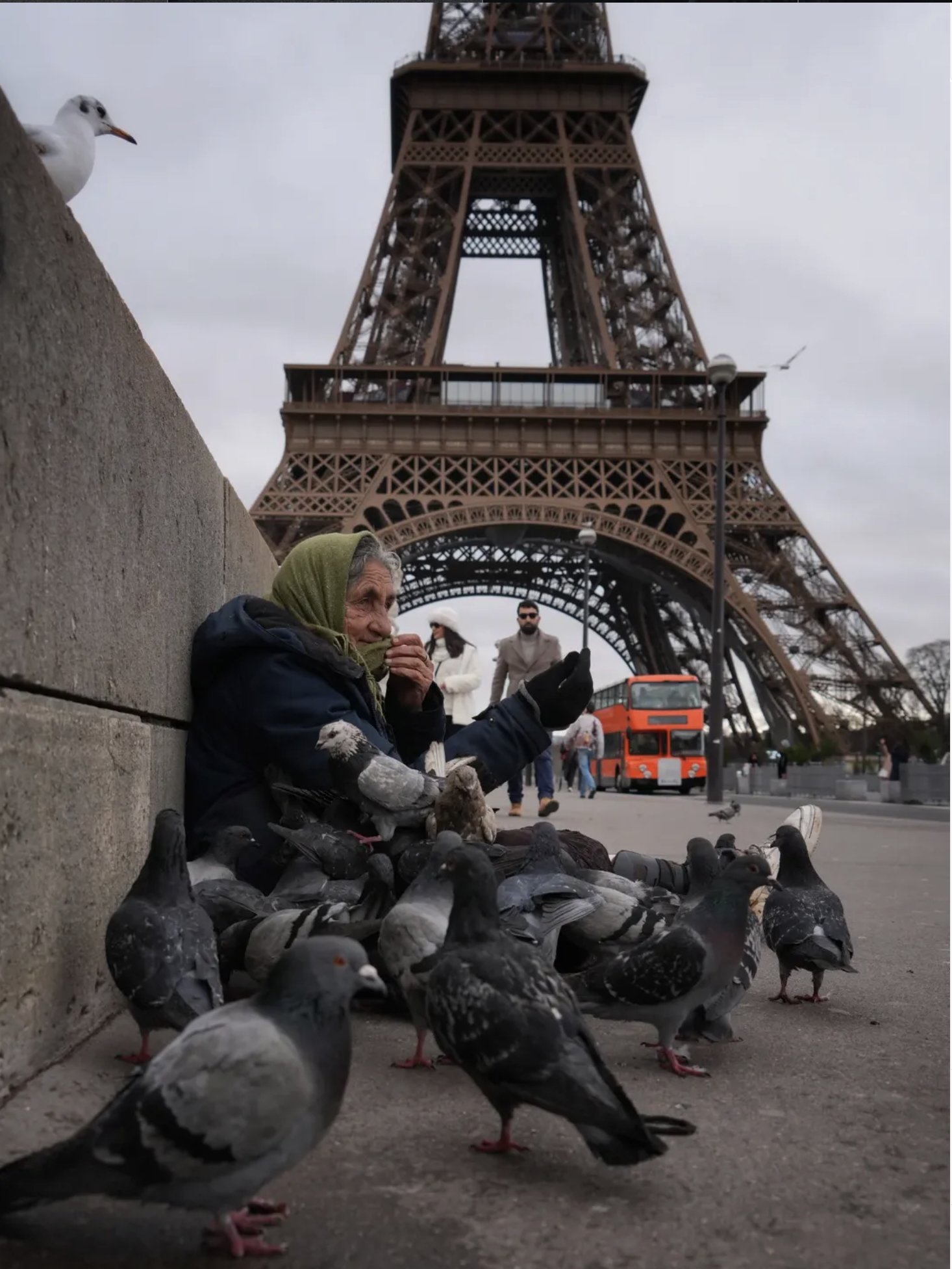 During my last visit to Paris in February 2026, I saw this woman begging under the Eiffel Tower with her birds. It was not surprising to me to encounter beggars with cats and dogs in various parts of Europe, but this woman, with dozens of birds around her, caught my eye. I immediately took a photo of it. Of course, I also paid a fee.