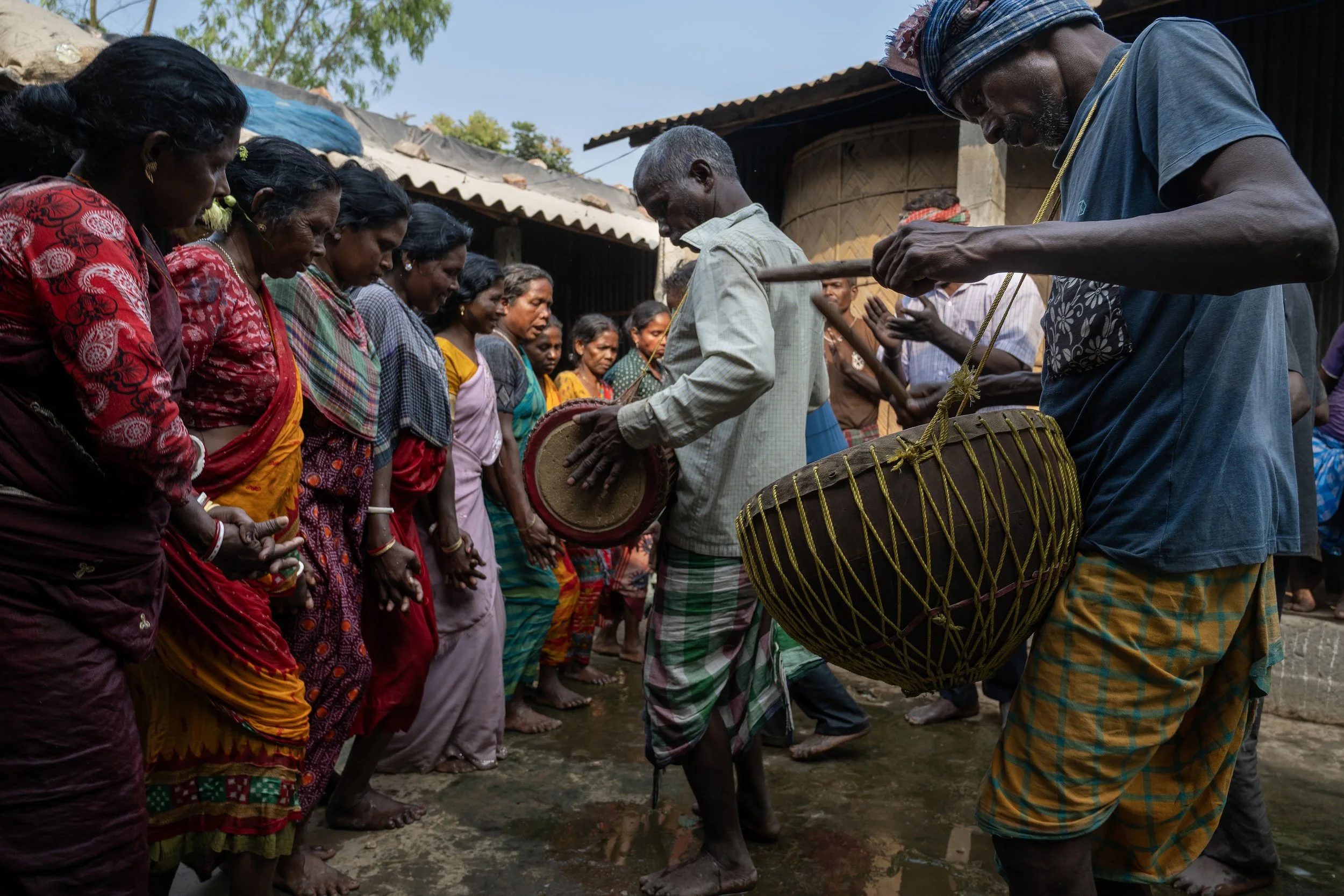 This Holi, seeking a distinctive experience, I embarked on a journey to the vibrant tribal village of Dangi, nestled within the Gunjariya Gram Panchayat, in the Islampur Subdivision of West Bengal. As I roamed through the charming streets of the village, the rhythmic thrum of a Madol—a traditional drum—resonated through the air, drawing me in like a magnetic force. Intrigued, I followed the sound until I was welcomed into a warm, inviting local home, where the essence of community was palpable.