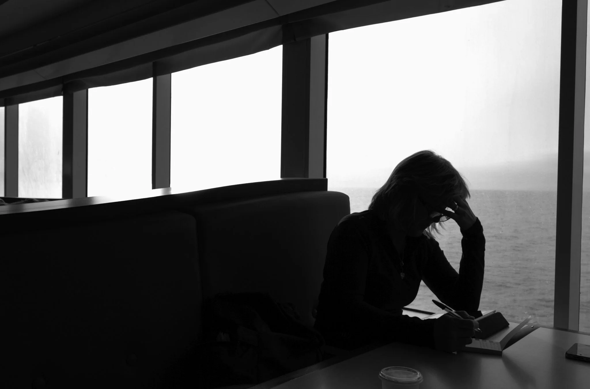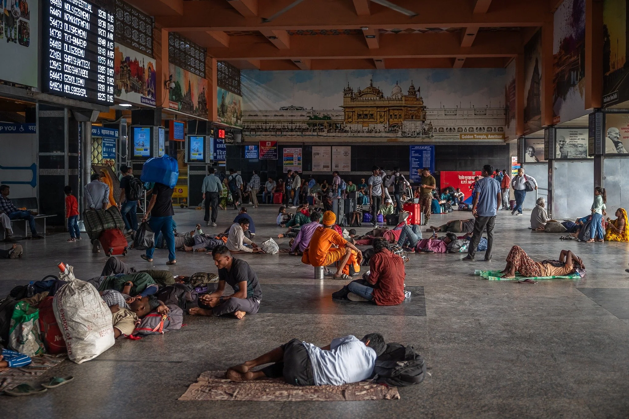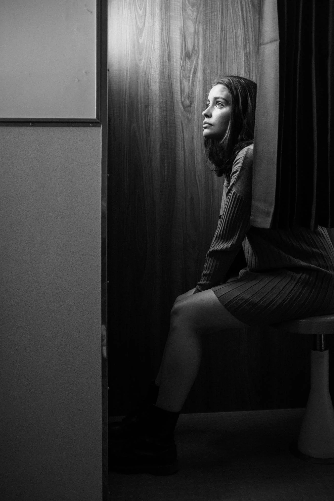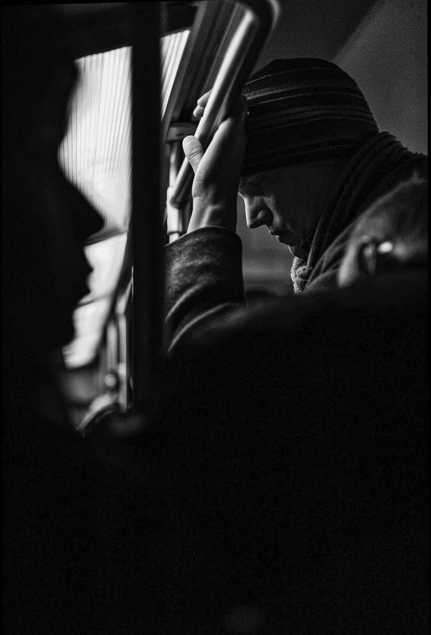 These two images might appear quite different at first, but both evoke a sense of anticipation. It's a quiet, intimate wait, possibly driven by longing, beautifully captured in Mikael Carlsson's black-and-white photograph, softened by gentle lighting. Meanwhile, the colourful image by Kobi Samarno depicts a shared moment of waiting in a station. Both images possess a spiritual quality, as if the subjects have surrendered to fate with peaceful acceptance.