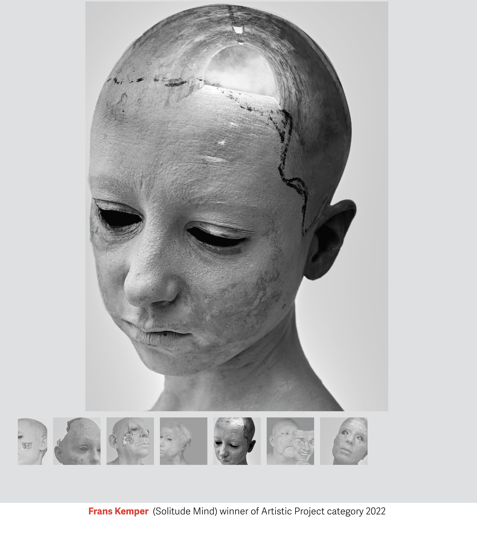 In this artistic series Frans Kemper wanted to highlight the state of perennial loneliness that every human being feels. No one can enter another's head ... We can only know what’s in our own, but even then, not very well. The series is symbolist, using the number seven as the number of days of the week, the seven heavens of Judaism and the number seven as a magic number. A disturbing interpretation that struck all the judges.